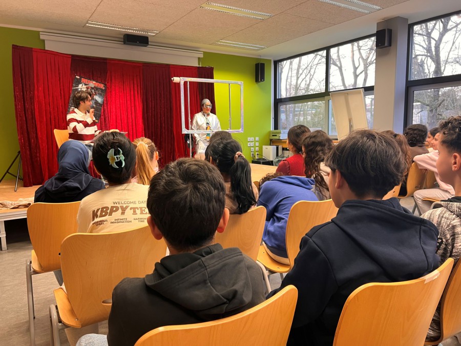 Am 22. Januar 2026 besuchte das Galli Theater Wiesbaden die 6. Klassen der Realschule plus Mainz Lerchenberg. Aufgeführt wurde das Stück „Voll vernetzt“, das Teil des Präventionsprogramms des Theaters ist und sich mit dem aktuellen Thema Mediensucht beschäftigt.