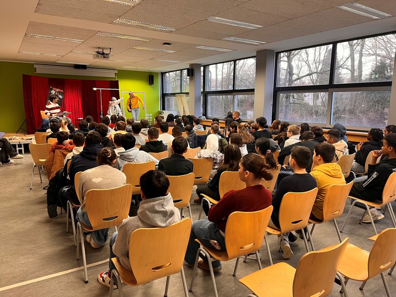 Am 22. Januar 2026 besuchte das Galli Theater Wiesbaden die 6. Klassen der Realschule plus Mainz Lerchenberg. Aufgeführt wurde das Stück „Voll vernetzt“, das Teil des Präventionsprogramms des Theaters ist und sich mit dem aktuellen Thema Mediensucht beschäftigt.